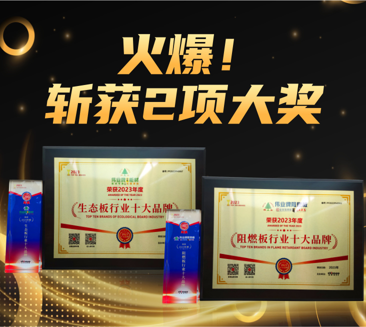 偉業牌板材又傳喜訊再次刷新榮譽榜,榮獲:2023年度生態板行業十大品牌2023年度阻燃板行業十大品牌 近日,品牌網“2023年度十大品牌”榜單揭曉,偉業牌板材憑...